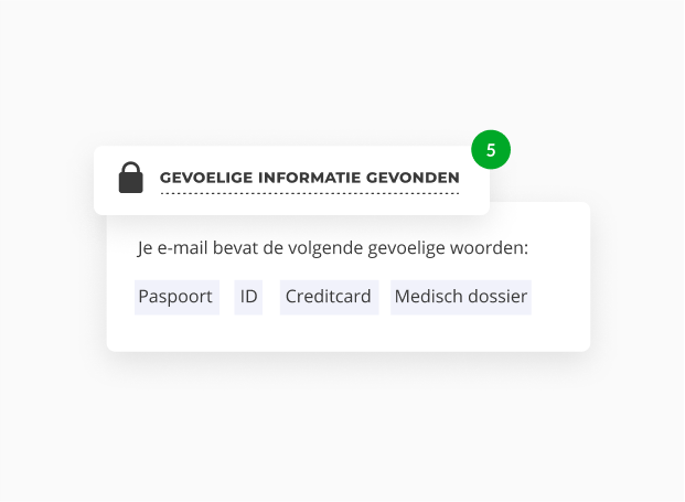 Je mailt zoals je gewend bent, maar krijgt wel automatisch een melding wanneer je gevoelige informatie wil versturen. Zo vergroot je bewustwording en kan je er in een paar tellen voor zorgen dat je e-mail veilig wordt verstuurd, allemaal zonder van je eigen werk afgeleid te worden!